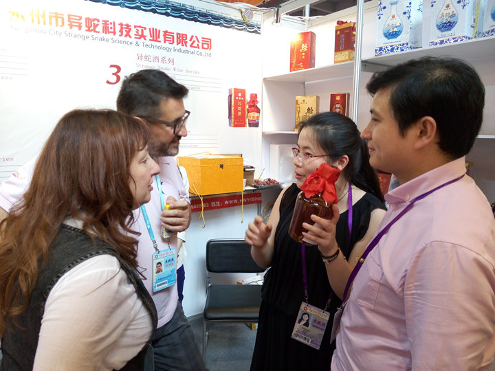 第117屆中國(guó)進(jìn)出口商品交易會(huì)于2015年5月1日隆重開幕。專注于“健康養(yǎng)生”產(chǎn)品研發(fā)、制造和銷售的永州市異蛇科技實(shí)業(yè)有限公司,此次攜旗下精心打造的柳宗元異蛇王酒及蛇干、蛇粉等蛇類周邊系列產(chǎn)品參會(huì)。開展第一天,公司產(chǎn)品其獨(dú)特的配方和養(yǎng)生效果就引起國(guó)內(nèi)外采購(gòu)商濃厚興趣,詢盤不斷。據(jù)企業(yè)負(fù)責(zé)人郭德志反映,當(dāng)天的詢盤人數(shù)絡(luò)繹不絕,達(dá)到近百人,采購(gòu)商紛紛舉杯試飲異蛇王酒,并對(duì)其口感大加贊許,通過(guò)五天的展示,所有樣品全部售罄,并相繼與印度客商達(dá)成蛇毒出口意向合作。