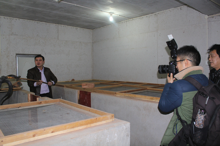 1月14日上午,湖南日?qǐng)?bào)報(bào)業(yè)集團(tuán)新聞中心記者李琪、李健在市區(qū)領(lǐng)導(dǎo)的陪同下,就我公司互聯(lián)網(wǎng)+現(xiàn)代養(yǎng)殖的模式進(jìn)行采訪報(bào)道,公司總經(jīng)理郭德志全程陪同講解。記者一行先后參觀了公司現(xiàn)代化室內(nèi)蛇類繁養(yǎng)基地、蛇類標(biāo)本實(shí)驗(yàn)室、工程實(shí)驗(yàn)室。 記者們對(duì)公司目前在蛇毒領(lǐng)域所做出的成果表示了充分的肯定,并承諾會(huì)將我們目前的成果通過新聞報(bào)道的方式讓更多老百姓知曉。