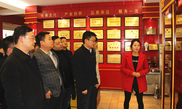 總經(jīng)理郭德志向領(lǐng)導(dǎo)一行介紹異蛇王酒產(chǎn)品的釀泡工藝