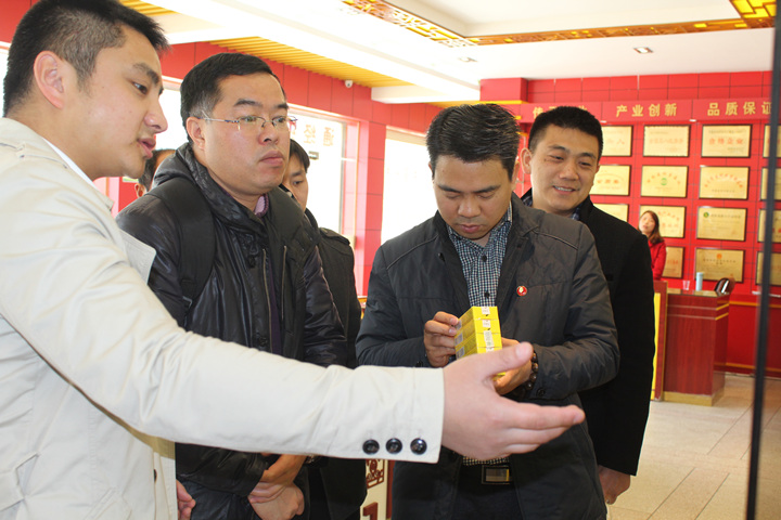 副總經(jīng)理郭德剛向九芝堂雷總一行介紹公司產(chǎn)品