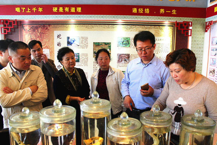 秦小明一行先后到異蛇科技公司的產(chǎn)品旗艦店、蛇類(lèi)標(biāo)本陳列室、釀酒車(chē)間、健康水產(chǎn)養(yǎng)殖基地、蛇類(lèi)繁養(yǎng)基地進(jìn)行實(shí)地調(diào)研。公司董事長(zhǎng)譚群英向秦小明一行匯報(bào)到:“永州市異蛇科技實(shí)業(yè)有限公司是永州的一家老牌企業(yè),二十多年,兢兢業(yè)業(yè),把永州異蛇異蛇科技打造成湖南地區(qū)的林業(yè)、農(nóng)業(yè)龍化企業(yè)、同時(shí)柳宗元商標(biāo)也成為中國(guó)馳名商標(biāo);公司異蛇王酒、異蛇鞭酒采用的是古法釀泡、現(xiàn)代工藝的釀泡方式,我們的工藝目前獲得了湖南省非物質(zhì)文化遺產(chǎn),這也是政府和消費(fèi)者對(duì)我們企業(yè)最大的認(rèn)可和鼓勵(lì)!同時(shí),我們正在和湖南地區(qū)的國(guó)家重點(diǎn)中藥企業(yè)——九芝堂洽談戰(zhàn)略合作。”秦小明聽(tīng)完后,對(duì)公司的現(xiàn)有的發(fā)展模式及方向表示認(rèn)可,并提出:小企業(yè)做銷(xiāo)量,中型企業(yè)做品牌、大型企業(yè)握方向,企業(yè)需要借力發(fā)力,依托產(chǎn)業(yè)集群,共同做大做強(qiáng)!