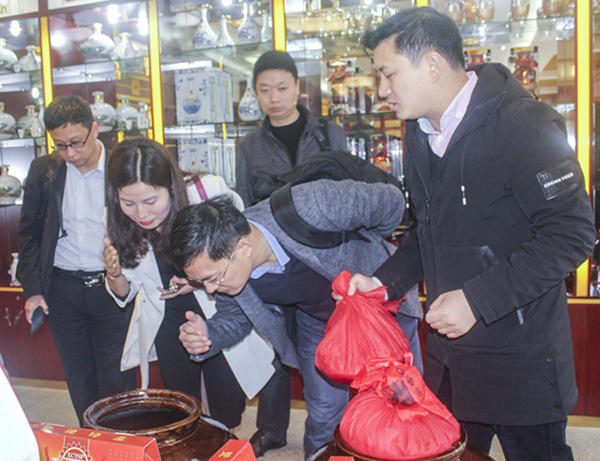 楊總一行體驗(yàn)公司自釀米酒的清香