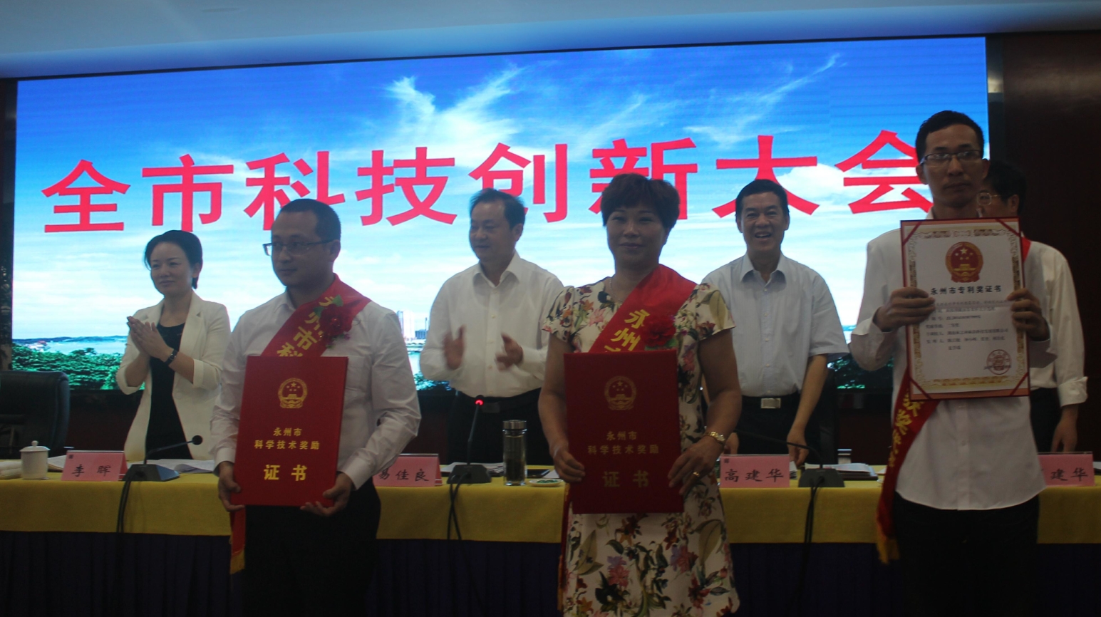 在2017年5月26日上午召開的永州市科技創(chuàng)新大會(huì)上,中共永州市委書記李暉,市長(zhǎng)易佳良等領(lǐng)導(dǎo)為獲獎(jiǎng)單位頒獎(jiǎng),公司董事長(zhǎng)譚群英代表公司領(lǐng)獎(jiǎng)。李暉寄語獲獎(jiǎng)單位及個(gè)人珍惜榮譽(yù),再接再厲,繼續(xù)發(fā)揮求真務(wù)實(shí)精神,大膽創(chuàng)新,不斷取得新成績(jī)。秉承科技為先,創(chuàng)新驅(qū)動(dòng)的原則,全面加快創(chuàng)新永州建設(shè),為建設(shè)創(chuàng)新開放新高地,品質(zhì)活力新永州提供強(qiáng)大動(dòng)力。