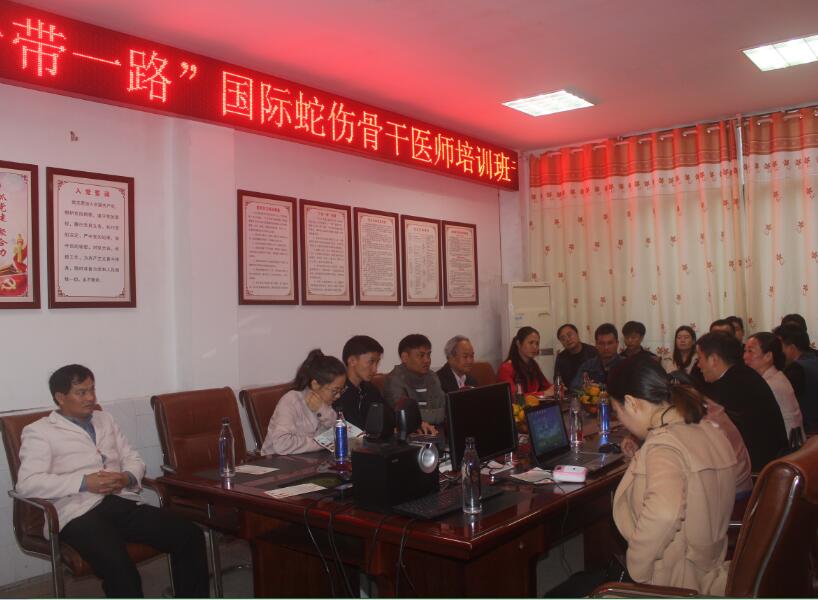 2018年10月16日,以余培南教授、柬埔寨成·布湛、!っ辖為首的“一帶一路”國際蛇傷專家團(tuán)一行在雙牌中醫(yī)院領(lǐng)導(dǎo)的陪同下來到公司實(shí)地考察,總經(jīng)理郭德志攜全體員工全程接待,雙方在熱情洋溢的氛圍中交流探討了在蛇傷救治、蛇毒應(yīng)用開發(fā)及科學(xué)技術(shù)普及等方面的經(jīng)驗(yàn),期待雙方進(jìn)一步的合作及發(fā)展。余培南教授是世界特色醫(yī)藥協(xié)會(huì)執(zhí)行會(huì)員,世界特色醫(yī)藥協(xié)會(huì)蛇傷醫(yī)學(xué)專業(yè)委員會(huì)顧問,亞洲蛇傷學(xué)會(huì)會(huì)長,廣東省肇慶市蛇傷救治基地技術(shù)顧問,廣西自治區(qū)梧州市民族醫(yī)藥研究院院長,享受國務(wù)院特殊津貼,是我國蛇傷急救領(lǐng)域的泰山北斗。